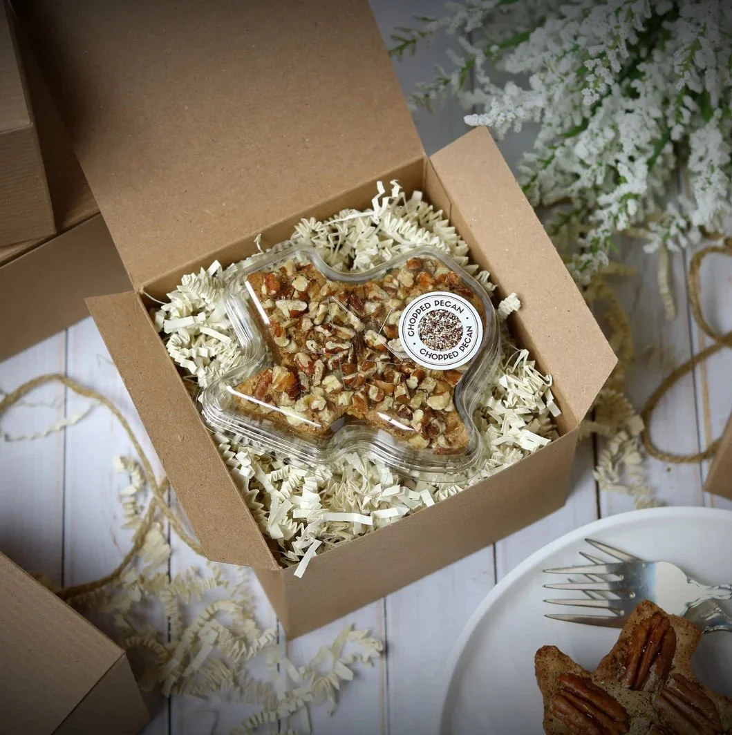S-Bar Construction is excited to give away delicious Texas-shaped pecan mini pies at our booth, thanks to our friends at the renowned Texas Pecan Cakes.